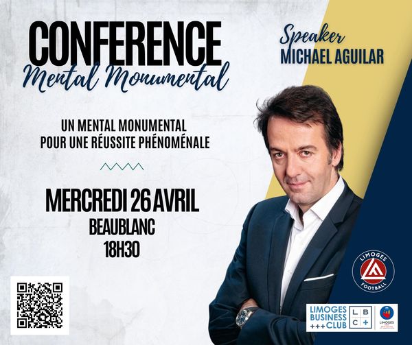Le Limoges Football, en collaboration avec 𝗟𝗶𝗺𝗼𝗴𝗲𝘀 𝗕𝘂𝘀𝗶𝗻𝗲𝘀𝘀 𝗖𝗹𝘂𝗯 organise le 𝟮𝟲 𝗔𝘃𝗿𝗶𝗹 prochain une conférence avec le speaker Michaël AGUILAR sur le thème « Mental Monumental ».